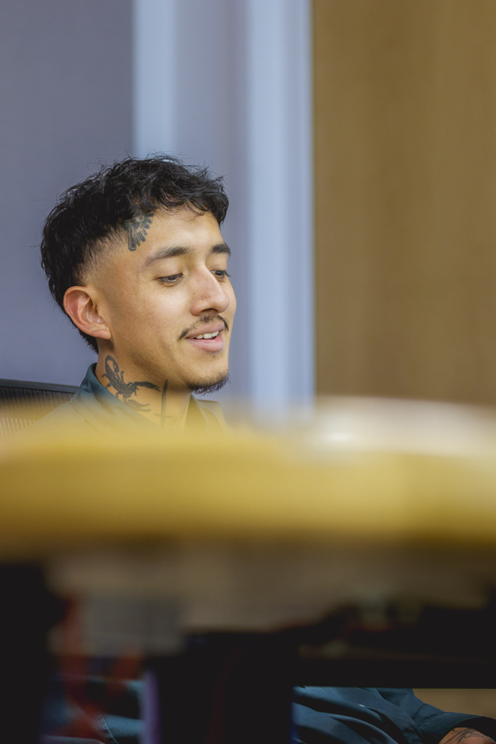 The shift began right before Brenneck came on board, Cuco ditched the synthesizers that once filled his music on songs like “Caution”, “Amor de Siempre”, and “Mesh Camp” and incorporated more organic instruments and organs, and mixed it in with a rich neo-falsetto. “I guess I knew my voice got better about it.” Cuco reflects on being at Diamond West Studios. “Just saying, work with, like, tape machines too. Was like. So I had the time… But seeing, like, Simon and Tommy just being on that, those kind of was just cool.”
